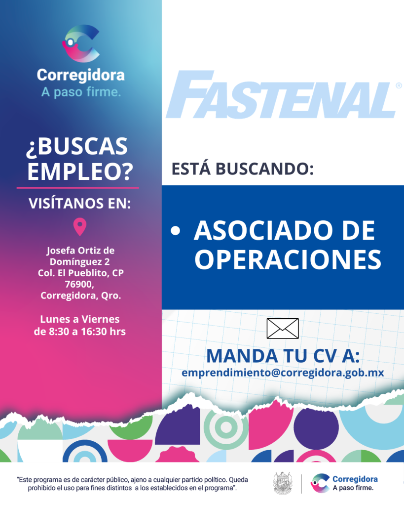 Si te interesa la vacante manda tu CV y tu INE por ambos lados a «emprendimiento@corregidora.gob.mx».