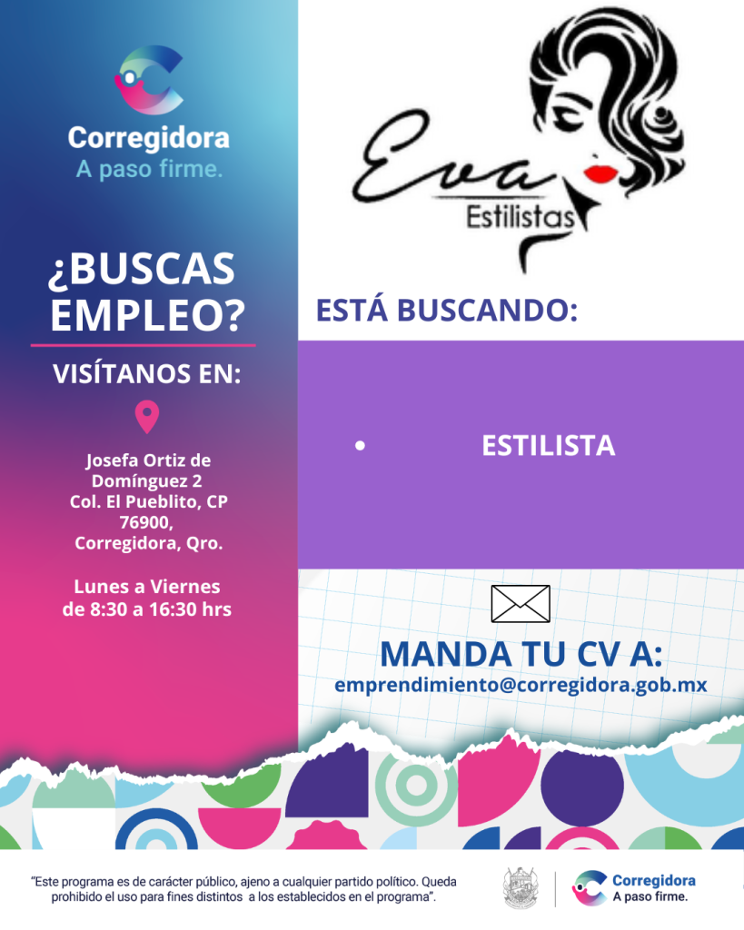 Si te interesa la vacante manda tu CV a «emprendimiento@corregidora.gob.mx» y adjunta tu INE por ambos lados.