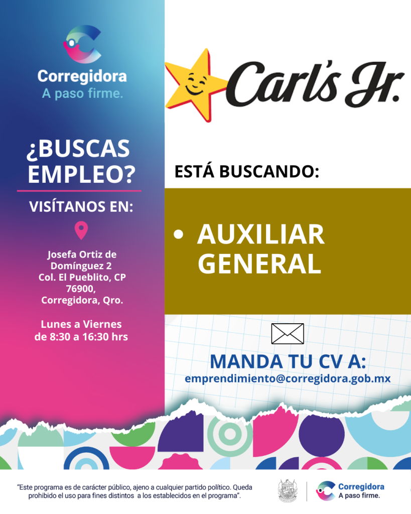 Si te interesa la vacante manda tu CV y tu INE por ambos lados a «emprendimiento@corregidora.gob.mx».