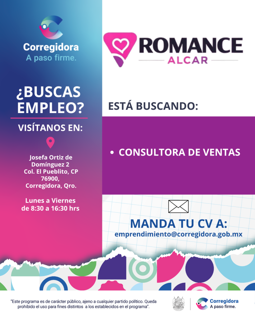 Si te interesa la vacante manda tu CV a «emprendimiento@corregidora.gob.mx» y adjunta tu INE por ambos lados.