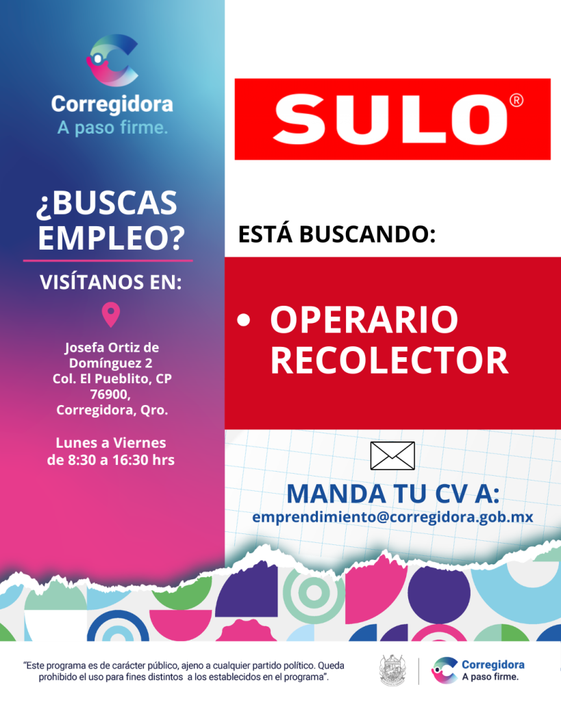 Si te interesa la vacante manda tu CV y tu INE por ambos lados a «emprendimiento@corregidora.gob.mx».