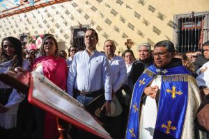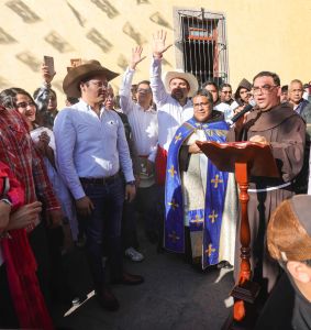 En la entrada a la Basílica de Nuestra Señora de El Pueblito, el padre guardián del recinto, Fray Antonio Miranda Arroyo, realizó la bendición de los bueyes llevados por las corporaciones entrante y saliente, acompañado del rector de la Basílica, Fray Francisco Salinas Osornio; el párroco de San Francisco Galileo, Pbro. Jaime Gutiérrez, representantes de las corporaciones y mayordomías, así como miembros del Gabinete Municipal y regidores.