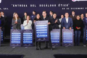 El presidente municipal de Corregidora, Chepe Guerrero, entregó el Decálogo Ético al gabinete legal y ampliado de la administración de Corregidora, el cual debe ser seguido por las y los servidores públicos de la demarcación. En el se promueven principios como trabajo, honradez, empatía, constancia, respeto, atención inmediata a la ciudadanía, solución de problemas y el uso responsable de los recursos públicos.