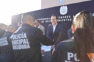 - El alcalde de Corregidora entregó 52 reconocimientos a policías, 3 monitoristas y 1 operadora de la línea de emergencia 911 por su eficiencia en el ejercicio de sus funciones.