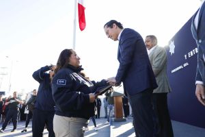 El presidente municipal de Corregidora, Chepe Guerrero, encabezó los honores a la bandera en las instalaciones de la Secretaría de Seguridad Pública Municipal. Además, entregó 52 reconocimientos a policías, tres monitoristas y una operadora de la línea de emergencia 911 por su destacada eficiencia en el ejercicio de sus funciones.