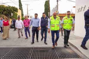 El presidente municipal de Corregidora, Chepe Guerrero, junto con el titular de la Secretaría de Gobierno en el Estado, Eric Gudiño; el secretario de Desarrollo Urbano y Obras Públicas en la entidad, Pio X Salgado; miembros del Gabinete Municipal y vecinos de la zona, supervisaron la limpieza del drenaje pluvial en la calle Paseo de Londres, en la colonia Tejeda, con el objetivo de evitar encharcamientos durante la temporada de lluvias.