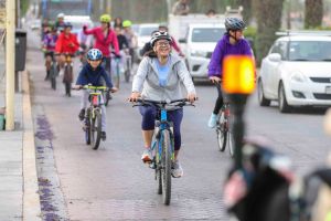 La Secretaría de Movilidad y la Secretaría de la Mujer de Corregidora llevaron a cabo la rodada “Rodamos Juntas, Llegamos Lejos”, en la que hombres y mujeres recorrieron en bicicleta diversas calles en la cabecera municipal.