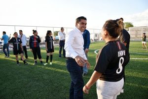 Durante la inauguración de esta obra, el alcalde y su equipo de colaboradores realizaron el tiro inaugural en la cancha de futbol rápido, y posteriormente participó en el partido que organizaron los niños y jóvenes, previo a la convivencia con los habitantes de esta colonia.
