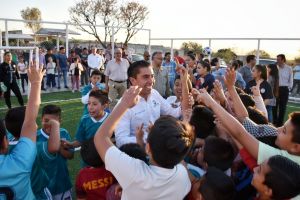 En su mensaje, el alcalde señaló que esta obra es resultado del trabajo en equipo entre gobierno federal, estatal, municipal y el Club de Migrantes, “que hoy sea una realidad este espacio, en donde los niños y jóvenes van a dejar de jugar en la tierra, valió mucho la pena”, expresó el alcalde quien dijo que son cerca de 25 millones de pesos los que se destinarán de manera directa a la infraestructura y recuperación de espacios deportivos.