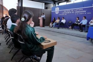 - Con una inversión cercana a los 200 mil pesos, 22 estudiantes de educación básica recibieron una laptop, como herramienta en apoyo a sus actividades escolares.