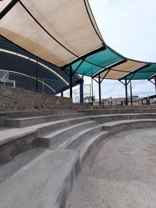 En la explicación técnica, el secretario de Obras Públicas Municipales, Juan Carlos García Sánchez compartió que esta obra incluye un anfiteatro con capacidad para 100 personas, arcotecho con construcción de 682 metros de cubierta, cancha de usos múltiples, gradas, red de nylon tipo pescador para las porterías, iluminación con tecnología led, andadores, rampas, terrazas, áreas verdes, 55 luminarias led, sistema de riego, malla perimetral y estacionamiento.