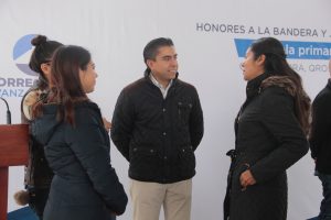 Durante la ceremonia de Honores a la Bandera en la Escuela Primaria 18 de Agosto, de la colonia Bernardo Quintana, el presidente municipal de Corregidora, Roberto Sosa Pichardo, anunció que dará impulso al programa de higiene bucal entre los alumnos.