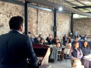 El presidente municipal de Corregidora, Adolfo Colín Sánchez, encabezó un desayuno con integrantes de la Cámara de Comercio de Canadá en México, donde les compartió las cualidades con las que cuenta la demarcación para la instalación de empresas.