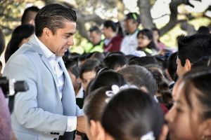 “Yo estoy trabajando para que ustedes sean felices, ese es mi mejor objetivo, trabajar para que disfruten su niñez, que sean plenos en lo que están haciendo, y junto con el equipo de la presidencia municipal, vamos a seguir apoyando muy fuerte a ustedes en su educación”, expresó el alcalde.