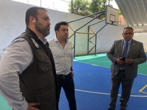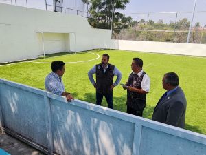 El presidente municipal de Corregidora, Adolfo Colín Sánchez, llevó a cabo un recorrido para supervisar las obras de infraestructura deportiva en la colonia Santa Bárbara, acompañado del titular de la Secretaría Municipal de Obras Públicas, Juan Carlos García Sánchez y el director municipal del Deporte, Luis Fernando Saldaña Ríos.